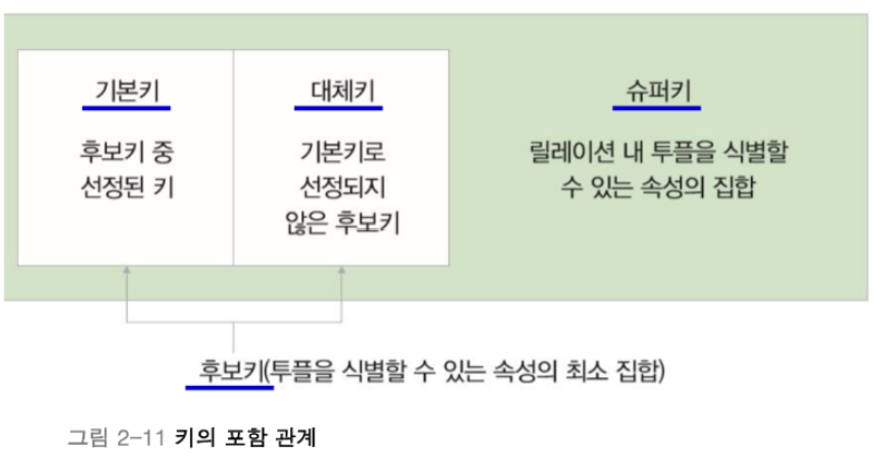- 릴레이션 내 투플을 식별할 수 있는 고유한 값을 가져야 한다.